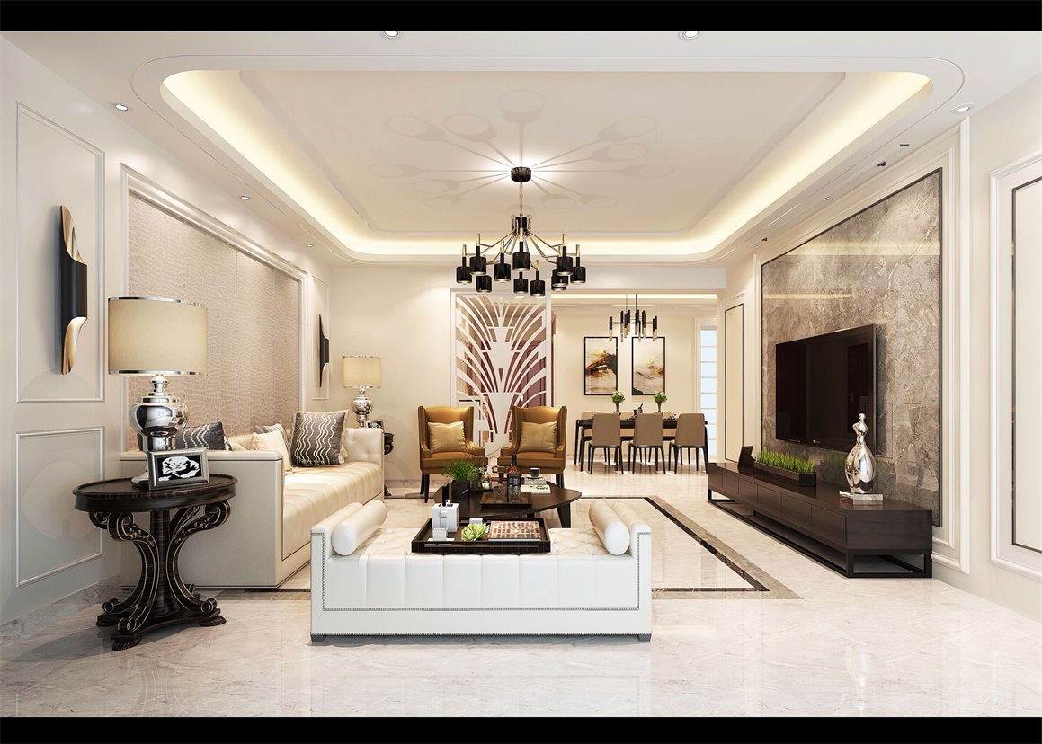 大理石、灰色地磚、藝術涂料、黑色不銹鋼,硬包