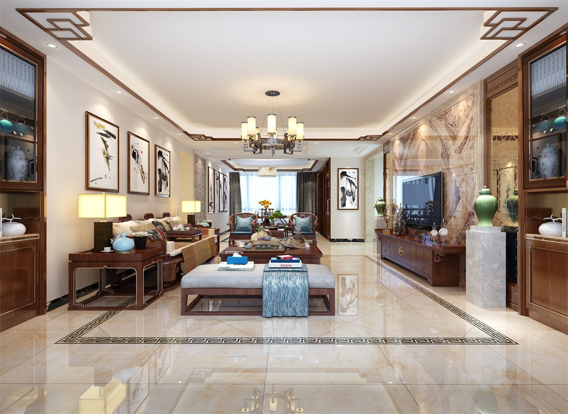 黑金花大理石線條、微晶磚、紅檀飾面板、拋釉磚等