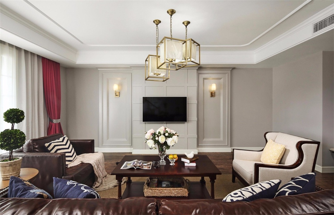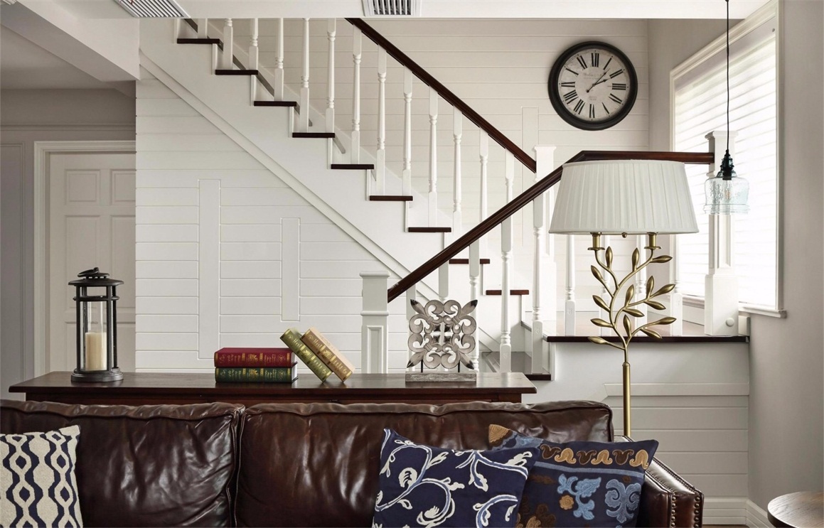 木地板、不銹鋼線條、定制實木護墻板、乳膠漆。