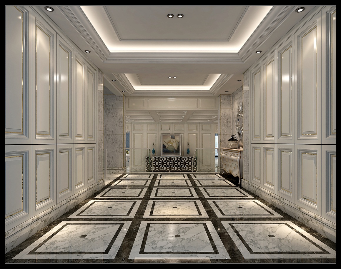 大花白大理石、爵士白大理石、實木烤漆護墻板、液體墻紙、地毯、布藝硬包