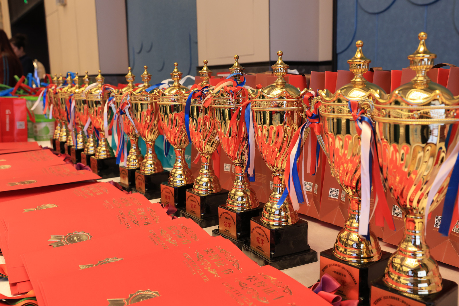 為獲獎選手頒發獎杯和證書