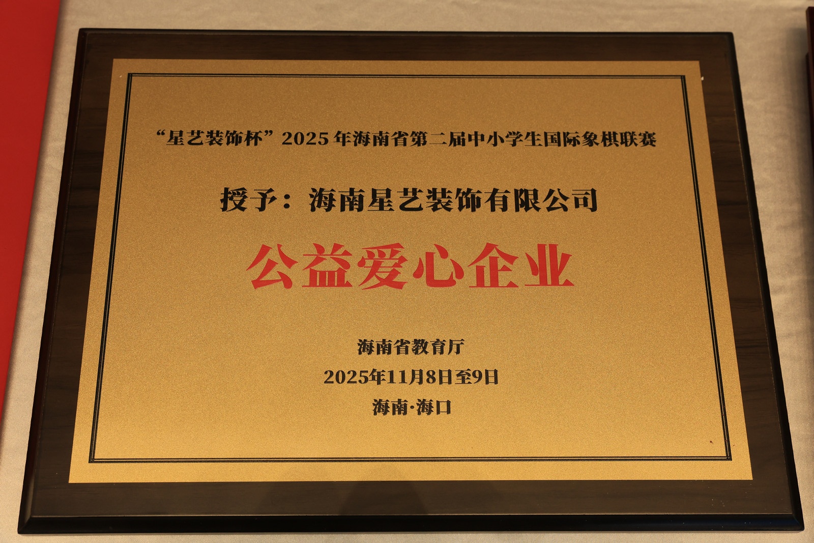 海南省中小學生國際象棋聯賽圓滿落幕,海南星藝裝飾獲授“公益愛心企業”